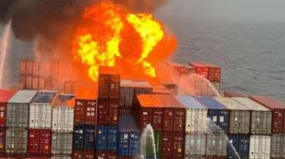 कंटेनर जहाज में लगी नहीं हो रही शांत...कोच्चि या मुंबई के पास होता तब क्या होता