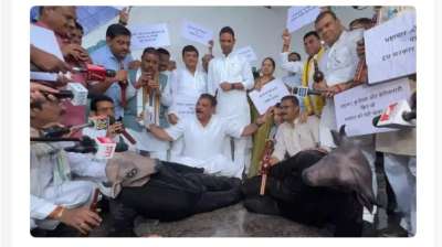 म.प्र. मानसून सत्र में कांग्रेस ने भैंस के सामने बीन बजाकर राजनीतिक प्रदर्शन किया