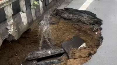 एमपी नगर में पहले से जारी सड़क गिरावट, घटिया निर्माण उजागर लगभग 10 फीट गड्ढा
