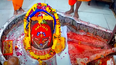 महाकालेश्वर मंदिर में अद्भुत नज़ारा, भस्म आरती के दौरान बाबा महाकाल मस्तक पर शिवलिंग धारण किए दिखे