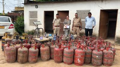अवैध रिफिलिंग का भंडाफोड़, सिलेंडर और मोटर जब्त