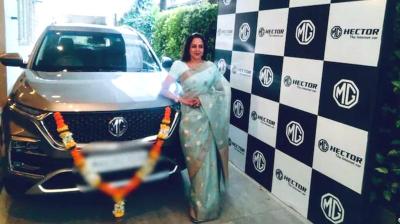 कार पूजन के बाद हेमा मालिनी ने दिए पोज