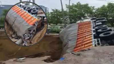 गुरुग्राम में 133 मिमी बारिश, पेरीफेरल पर धंसी सड़क, ट्रक पलटा