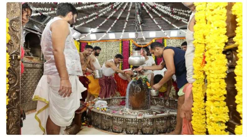 इंदौर विधानसभा क्रमांक-3 से बीजेपी विधायक गोलू शुक्ला की कांवड़ यात्रा रविवार यानी 20 जुलाई की रात उज्जैन पहुंची।सोमवार को करीब तड़के ढाई बजे बीजेपी विधायक महाकालेश्वर मंदिर पहुंचे। उनके साथ बेटा रूद्राक्ष भी था। वे भस्मारती में शामिल होने के लिए मंदिर पहुंचे थे। सूत्रों के मुताबिक मंदिर समिति के अधिकारियों ने कहा कि केवल गोलू शुक्ला को परमिशन दी गई है। बताया जा रहा है कि इसी दौरान रूद्राक्ष ने मंदिर के गर्भगृह में जाने की कोशिश की, तो वहां मौजूद कर्मचारियों ने उन्हें रोका। जब बीजेपी विधायक के बेटे को अंदर जाने नहीं मिला तो उन्होंने कर्मचारियों को धमकाया।