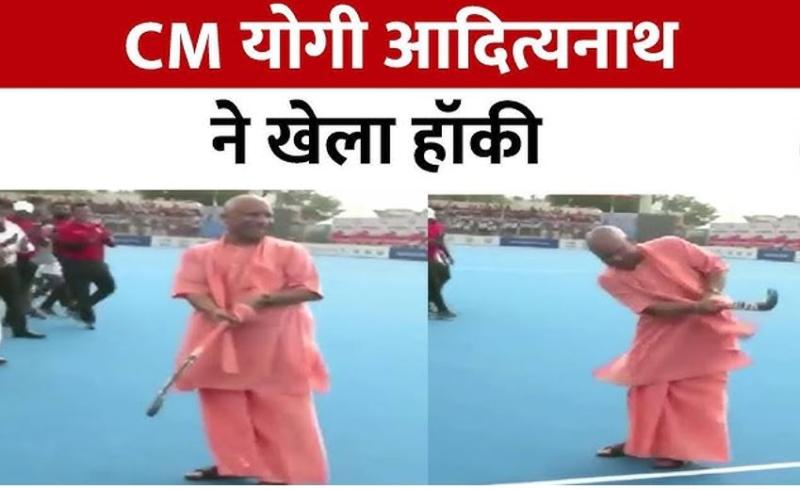 हॉकी मैदान में सीएम योगी का नया अंदाज, खिलाड़ियों को प्रोत्साहित करने के लिए खुद मैदान पर उतरे और शॉट लगाया