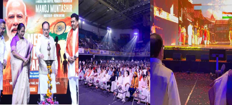 दिल्ली सरकार की ओर से प्रधानमंत्री नरेंद्र मोदी की जीवन यात्रा पर आधारित माई कंट्री फर्स्ट: द अनटोल्ड स्टोरी ऑफ नरेंद्र मोदी नाम से कार्यक्रम की संगीतमय प्रस्तुति का आयोजन गुरुवार (18 सितंबर) शाम 6 बजे इंदिरा गांधी स्टेडियम के केडी जाधव हॉल में किया गया. इस संगीतमय प्रस्तुति के जरिये पीएम मोदी के बाल्यकाल, किशोरावस्था, युवावस्था के साथ-साथ राजनीतिक संघर्ष से जुड़े सभी आयामों को प्रदर्शित किया गया. इस कार्यक्रम में बीजेपी के अध्यक्ष और स्वास्थ्य मंत्री जेपी नड्डा के अलावा दिल्ली की मुख्यमंत्री रेखा गुप्ता भी शामिल हुईं.