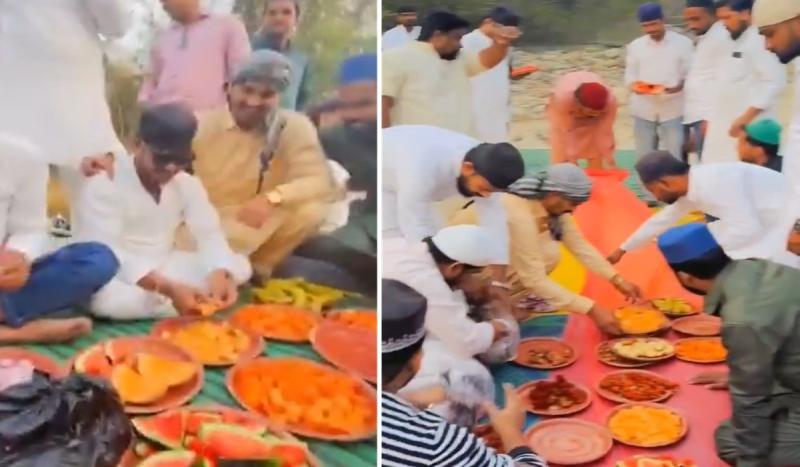 यह घटना श्रावस्ती के सिरसिया थाना क्षेत्र में भारत-नेपाल सीमा के पास स्थित सोनपथरी मंदिर और बाबा के आश्रम के पास की है। जानकारी के अनुसार, रमजान के आखिरी दिनों में कुछ लोग वहां रोजा खोलने (इफ्तार) के लिए पहुंचे थे। वायरल वीडियो में करीब 15-20 लोग इफ्तार करते हुए दिखाई दे रहे हैं। आरोप है कि उन्होंने मंदिर के पास मांसाहारी भोजन किया और उसके बचे हुए हिस्से पास की झील में फेंक दिए। बताया जा रहा है कि इसी झील के पानी का इस्तेमाल मंदिर में भोजन बनाने के लिए किया जाता है।