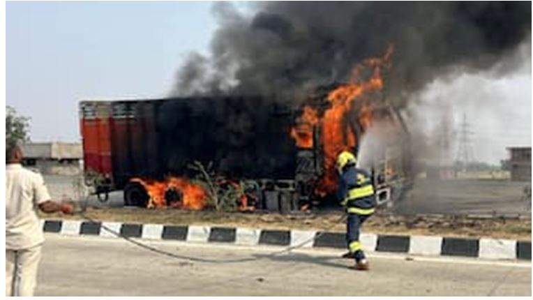 आग लगने का लाइव वीडियो मौके पर मौजूद किसी व्यक्ति ने बना लिया, जो तेजी से सोशल मीडिया पर वायरल हो रहा है। वीडियो में देखा जा सकता है कि किस तरह ट्रक धू-धू कर जल रहा है और आसपास धुआं फैल गया है। ड्राइवर और क्लीनर की जान तो बच गई, लेकिन लाखों का ट्रक और माल खाक हो गया।
