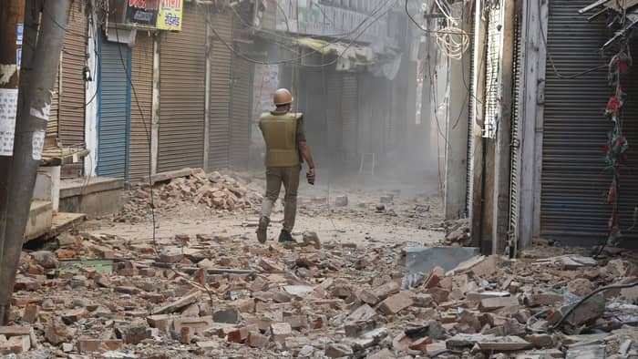 ध्वस्तीकरण के दौरान भारी पुलिस बल रहा तैनात