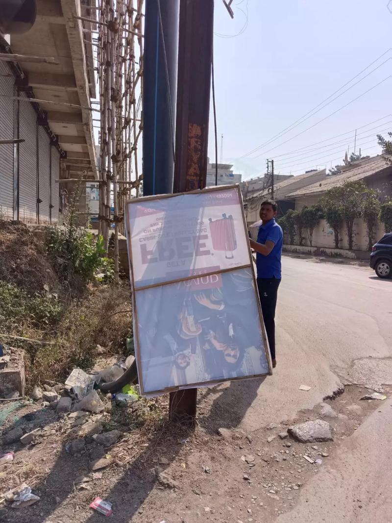 रायपुर। रायपुर नगर पालिक निगम ने नगर निवेश विभाग के सहयोग से अवैध प्रचार विज्ञापन पर सख्त कार्रवाई की है। नगर पालिक निगम के आयुक्त विश्वदीप के निर्देश पर नगर निगम जोन 3 की टीम ने अभियान चलाकर शासकीय संपत्ति पर अवैध प्रचार चस्पा करने वाले संस्थानों को नोटिस जारी किया और नियमानुसार जुर्माना लगाया।